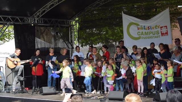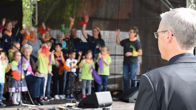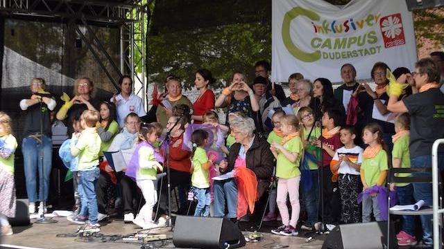 Der MitMachChor aus Duderstadt sorgte für gute Stimmung auf dem Domhof in Hildesheim.