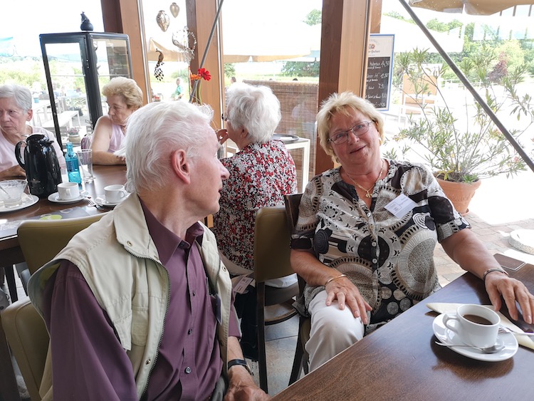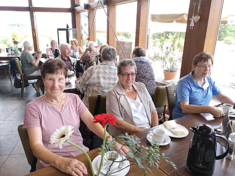 Gut gelaunt kamen die Gäste durch den ehrenamtlichen Fahrdienst pünktlich zum Breitenberg und das Strahlen des Himmels hatte sich bereits auf die Gesichter übertragen. Wurst und Käseplatten, dazu Obst, Joghurt und gekochte Eier luden neben frischen Brot und Brötchen zum genüsslichen Frühstück ein. Eine „Sinndeutergeschichte“ vorgetragen von Fr Hellbrück, bezog sich nochmals auf den gestrigen Campingtag.