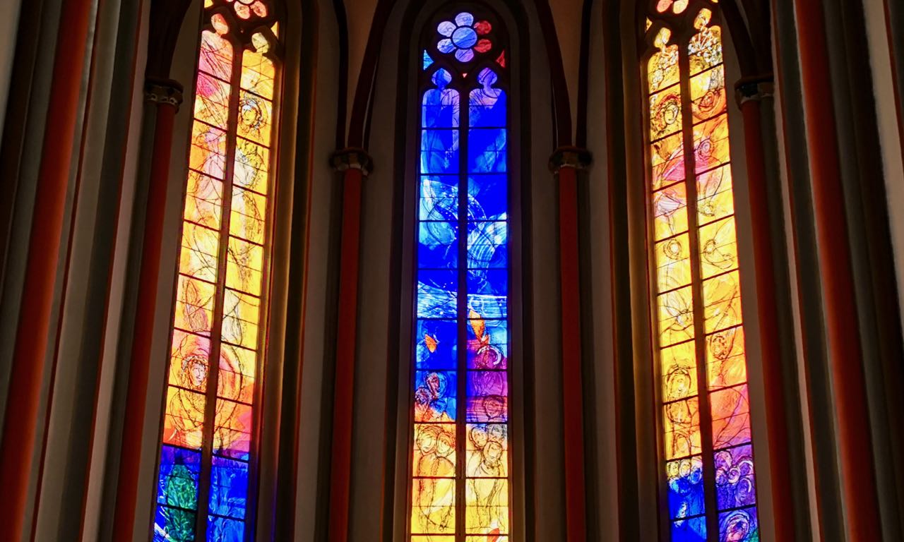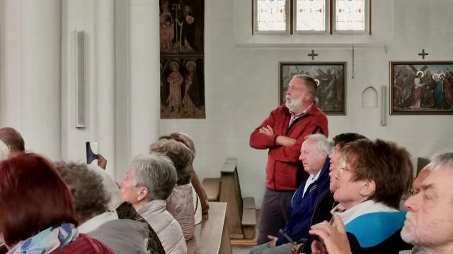 Nach einer beschaulichen Anfahrt nach Heiligenstadt war die erste Zwischenstation das Marcel-Callo-Haus. Dort empfing uns Herr Heiland, um die kurze Stadtführung zu St. Marien zu leiten. Dort wurden die stilistisch an Marc Chagall erinnernden Kirchenfenster von Glaskünstler Graham Jones aus London betrachtet.